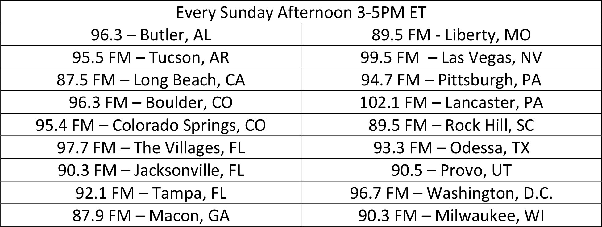Every Sun Morning 5-7 AM MT